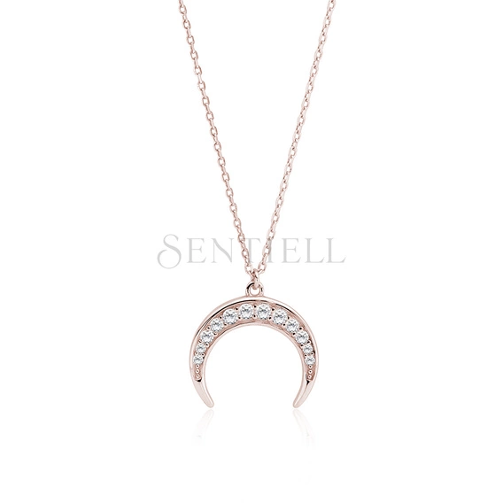 Srebrny pozłacany naszyjnik pr.925 - półksiężyc z cyrkoniami - różowe złoto