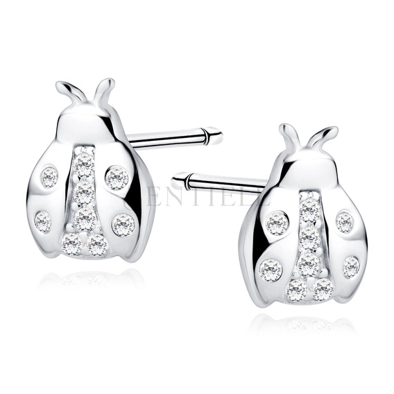 Kolczyki srebrne pr. 925 biedronka z cyrkoniami