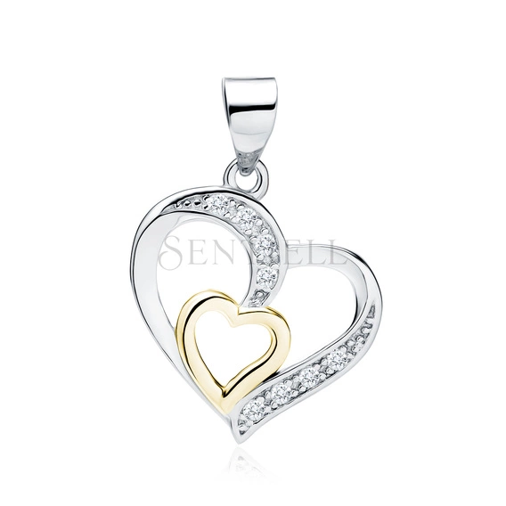 Srebrna zawieszka pr.925 pozłacane serce w sercu z cyrkoniamii