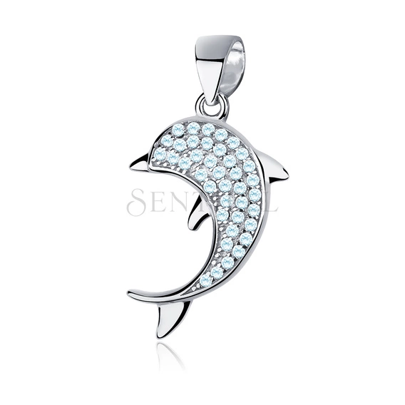 Srebrna zawieszka pr.925 delfin z akwamarynowymi cyrkoniami