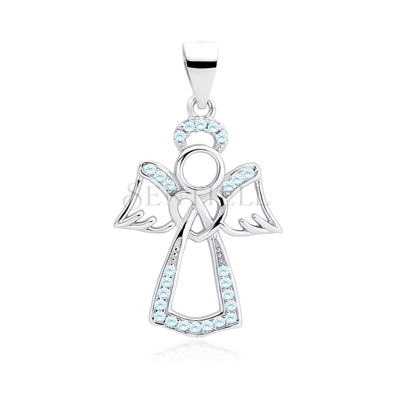 Srebrna zawieszka pr.925 anioł z akwamarynowymi cyrkoniami