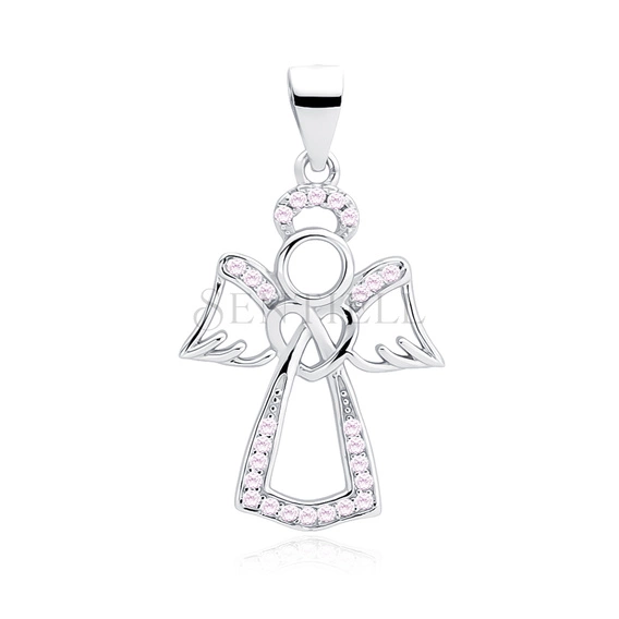 Srebrna zawieszka pr.925 anioł z jasnoróżowymi cyrkoniami