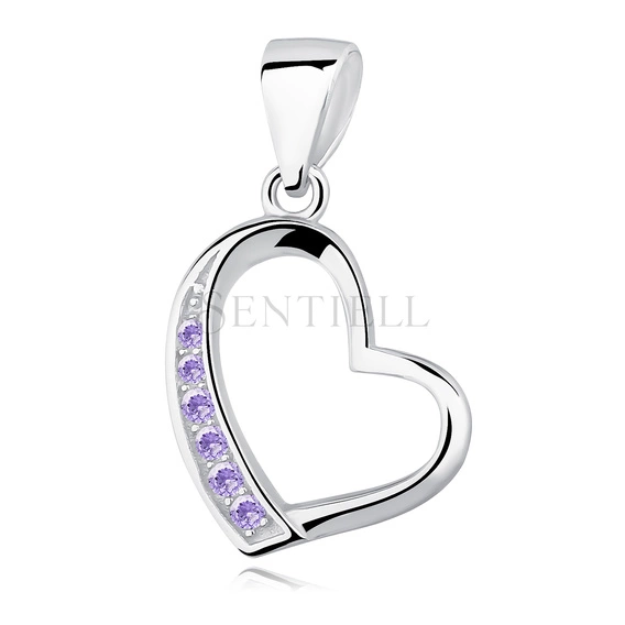 Srebrna zawieszka pr.925 serce z fioletowymi cyrkoniami