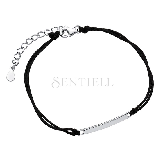 Srebrna pr.925 bransoletka z delikatną blaszką i czarnym sznurkiem