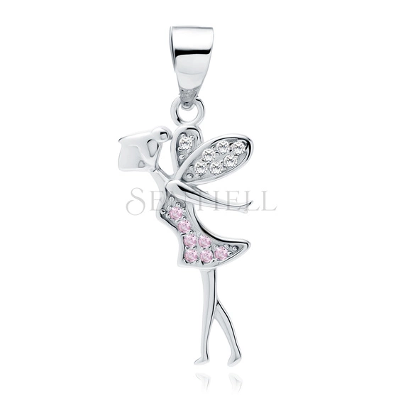 Srebrna zawieszka pr.925 wróżka z jasnoróżowymi i białymi cyrkoniami