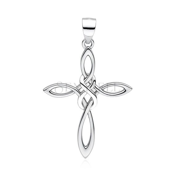 Srebrny pr. 925 krzyżyk rodowany z motywem nieskończoności 34 x 21 mm