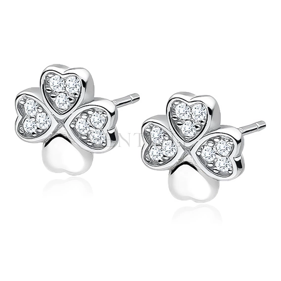 - Srebrne kolczyki pr. 925 koniczynki z cyrkoniami