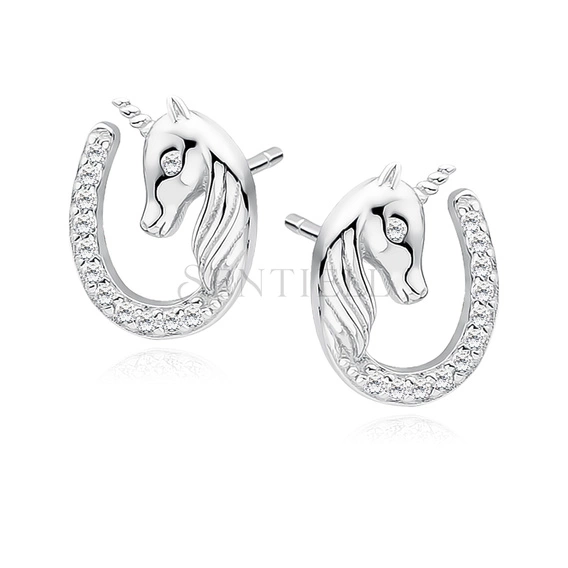 Srebrne kolczyki pr. 925 podkowa - jednorożec z białymi cyrkoniami