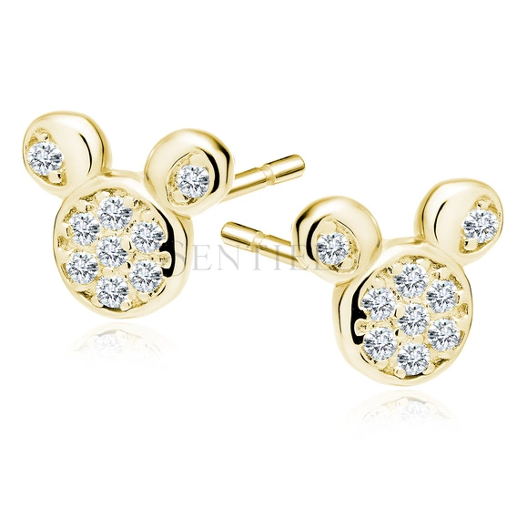 Kolczyki srebrne pr. 925 myszka z cyrkoniami - pozłacane