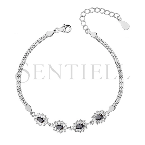 Srebrna modna bransoletka pr.925 z czarnymi cyrkoniami - karmazycja