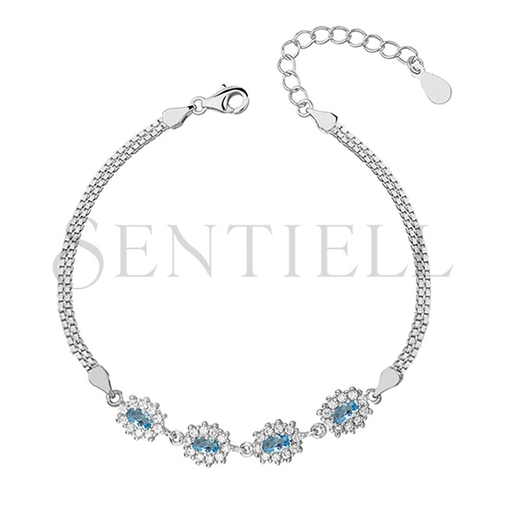 Srebrna modna bransoletka pr.925 z akwamarynowymi cyrkoniami - karmazycja