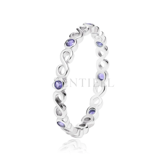 Srebrny delikatny pierścionek pr.925 z fioletowymi cyrkoniami - Nieskończoność