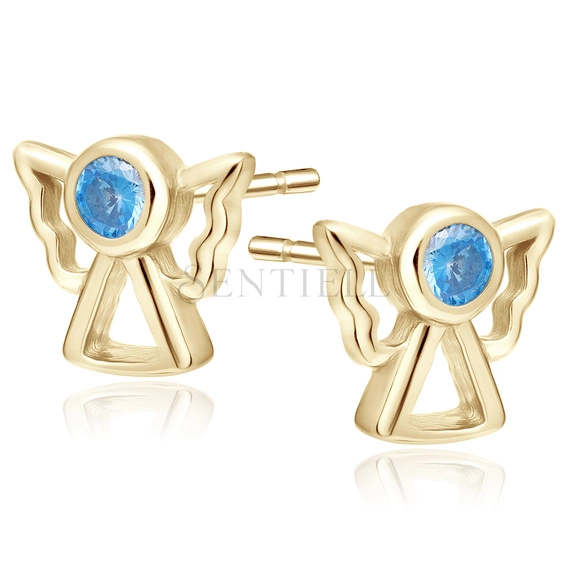 Srebrne pozłacane pr.925 kolczyki aniołki z akwamarynową cyrkonią