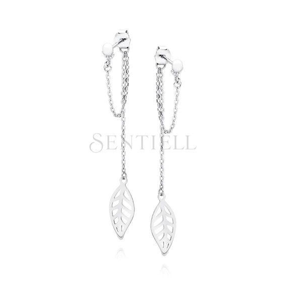 Srebrne kolczyki pr.925 łańcuszki z listkiem