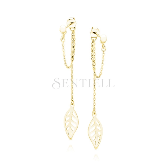 Srebrne pozłacane kolczyki pr.925 łańcuszki z listkiem
