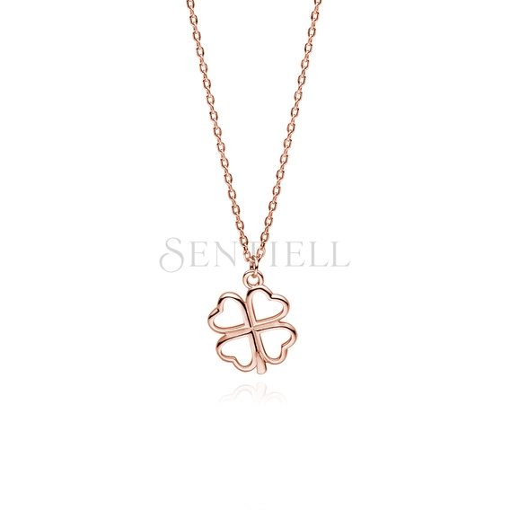 Srebrny naszyjnik pr.925 pozłacana koniczyna - różowe złoto