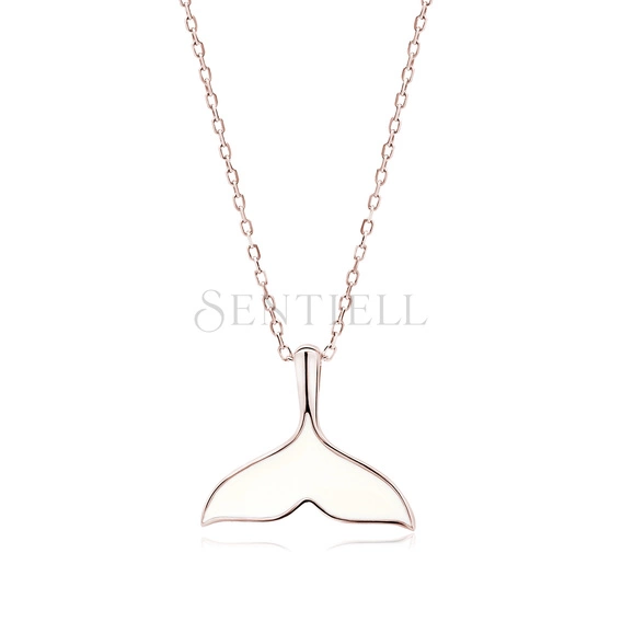 Srebrny pozłacany naszyjnik pr.925 płetwa wieloryba białą emalią - różowe złoto