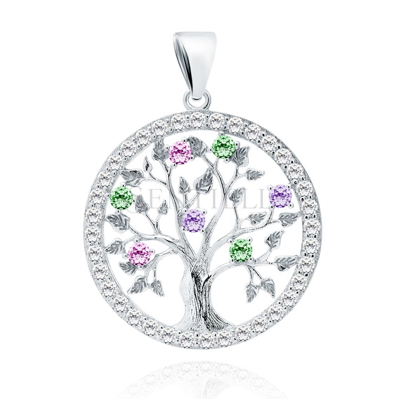 Srebrna zawieszka pr.925 drzewo szczęścia z kolorowymi cyrkoniami
