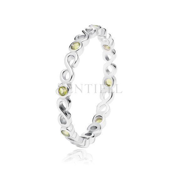 Srebrny delikatny pierścionek pr.925 z oliwkowymi cyrkoniami - Nieskończoność