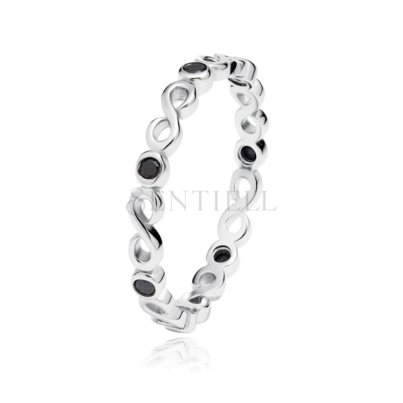 Srebrny delikatny pierścionek pr.925 z czarnymi cyrkoniami - Nieskończoność