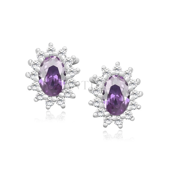 Srebrne kolczyki pr. 925 z ametystową cyrkonią - karmazycja