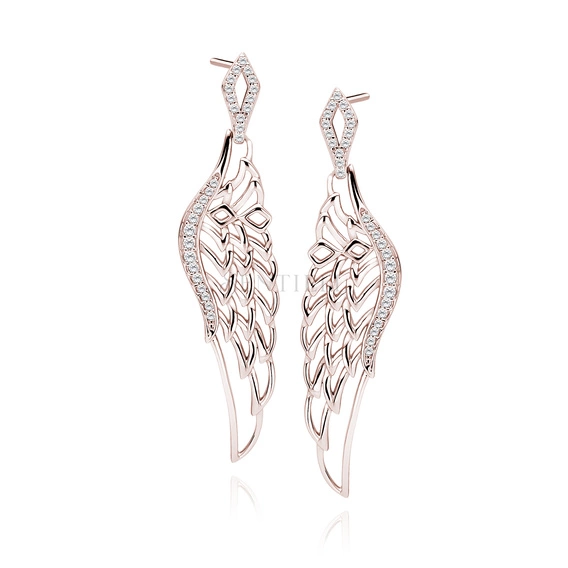 Srebrne pr. 925 kolczyki - pozłacane duże skrzydła z cyrkoniami - różowe złoto