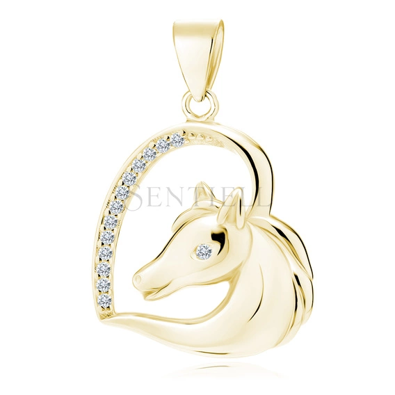 Srebrna pozłacana zawieszka pr.925 serce - koń z białymi cyrkoniami