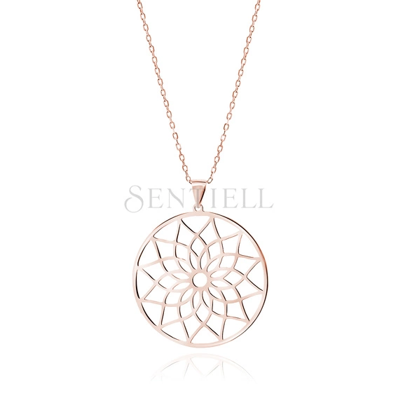 Srebrny pozłacany naszyjnik pr.925 - mandala - różowe złoto