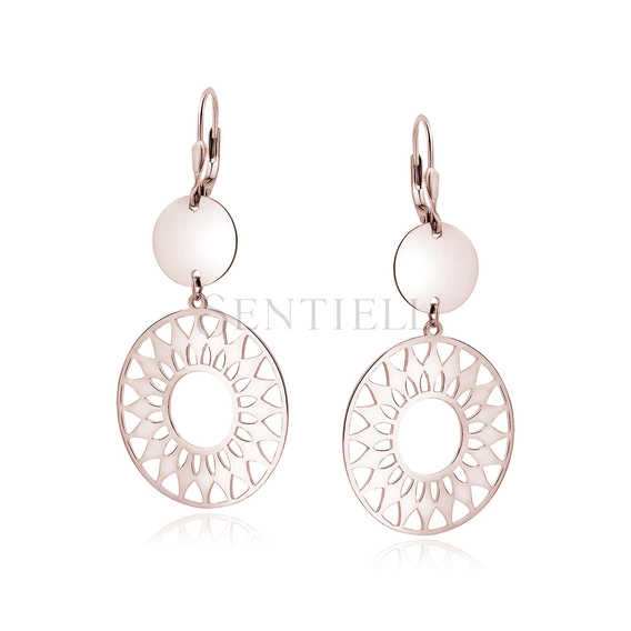 Srebrne (925) pozłacane kolczyki - Mandala z kółkiem - różowe złoto