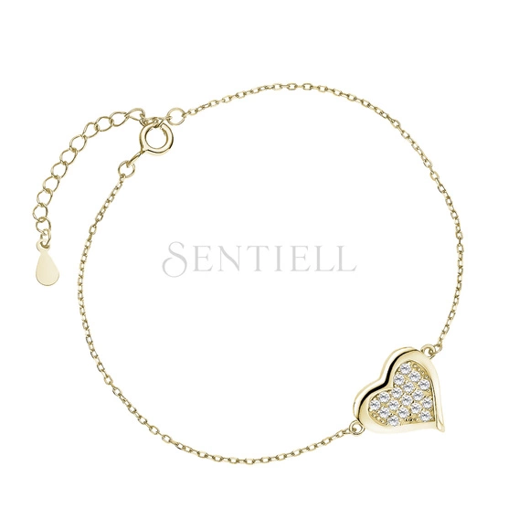 Srebrna pozłacana bransoletka pr.925, serce z cyrkoniami