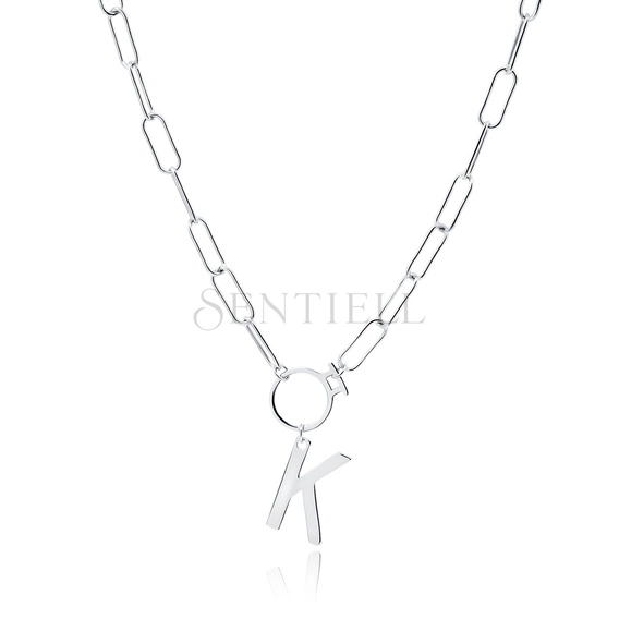 Srebrny naszyjnik pr.925 literka K na łańcuszku z kółkiem