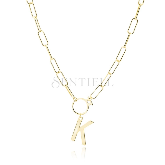 Srebrny pozłacany naszyjnik pr.925 literka K na łańcuszku z kółkiem