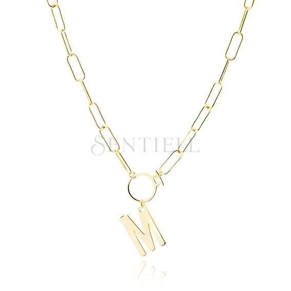 Srebrny pozłacany naszyjnik pr.925 literka M na łańcuszku z kółkiem
