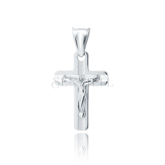 Srebrny pr. 925 krzyżyk satynowany z diamentowanym motywem 23 x 12 mm