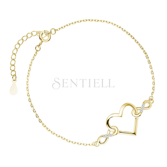 Srebrna (925) pozłacana bransoletka - serce i nieskończoności z białymi cyrkoniami