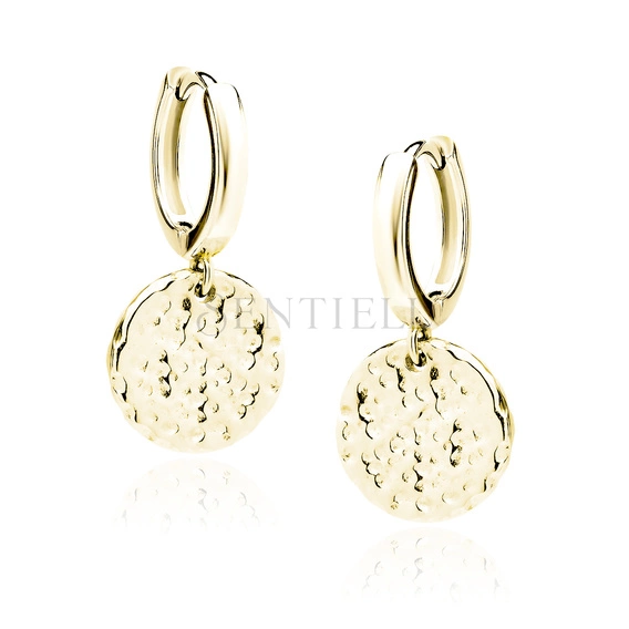 Srebrne (925) pozłacane kolczyki - okrągła fakturowana blaszka