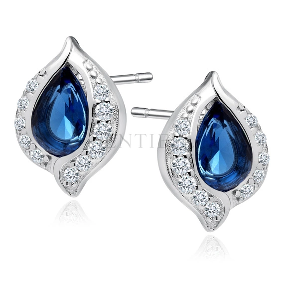 Srebrne, delikatne kolczyki pr.925 - szafirowa kropla w cyrkoniach