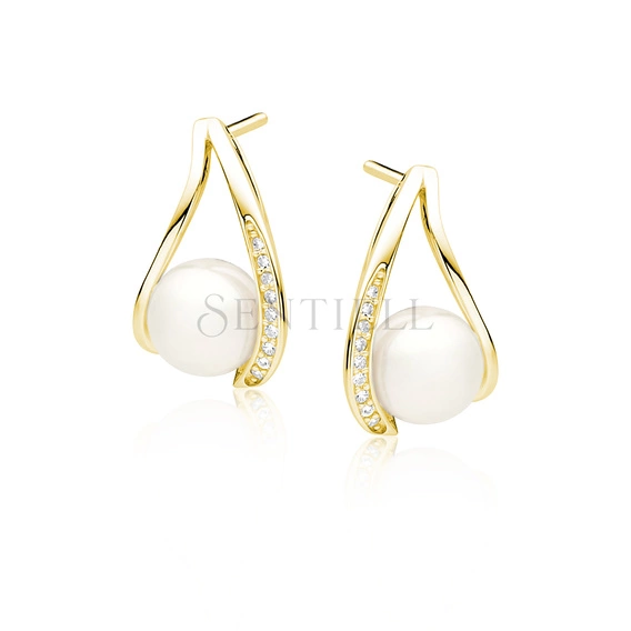 Srebrne pozłacane kolczyki pr. 925 perły z cyrkoniami