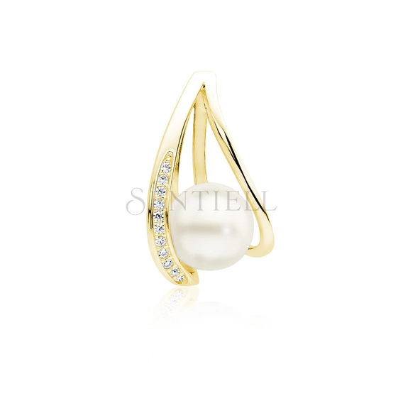 Srebrna pozłacana zawieszka pr. 925 perła z cyrkoniami