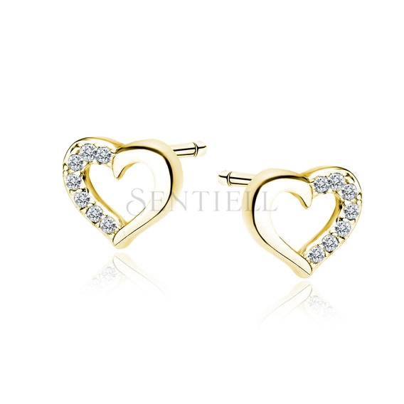 Srebrne pozłacane kolczyki pr.925 - serca z białymi cyrkoniami