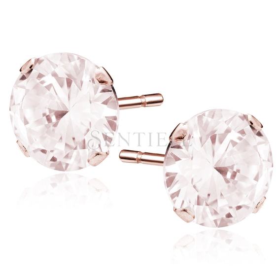 Srebrne pozłacane kolczyki pr.925 Cyrkonia okrągła średnica 10mm - różowe złoto