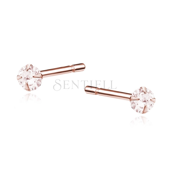 Srebrne pozłacane kolczyki pr.925 Cyrkonia okrągła średnica 3mm - różowe złoto