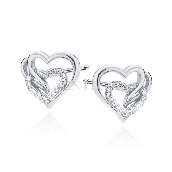 Srebrne kolczyki pr. 925 potrójne serca z białymi cyrkoniami