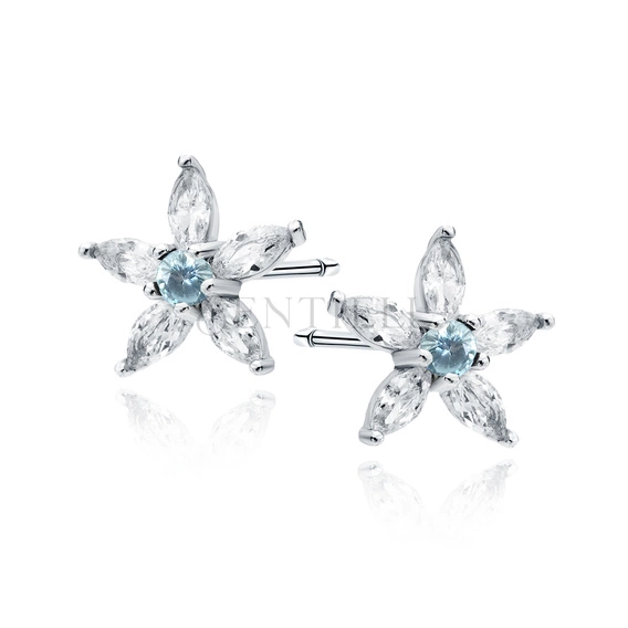Srebrne kolczyki pr.925 kwiatek z akwamarynową cyrkonią