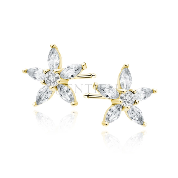 Srebrne pozłacane kolczyki pr.925 kwiatek z białymi cyrkoniami