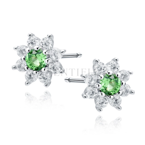 Srebrne kolczyki pr.925 kwiatek ze szmaragdową cyrkonią