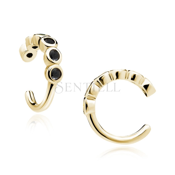 Srebrna pr.925 pozłacana nausznica z czarnymi cyrkoniami