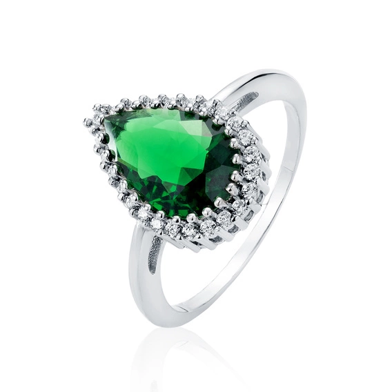 Srebrny pierścionek pr.925 ze szmaragdową cyrkonią