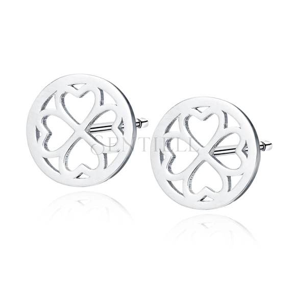 Srebrne kolczyki pr.925 - koniczyna / serca w kole