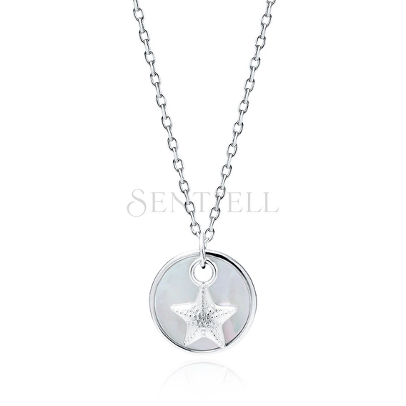Srebrny naszyjnik pr.925 gwiazda w kole z masą perłową
